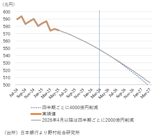 しかし時間の経過とともに、国債買い入れの減額規模は大きくなり、国債保有残高の削減ペースは加速度的に高まる。それは需給の悪化懸念から長期・超長期の金利上昇をもたらすリスクを高めかねない。