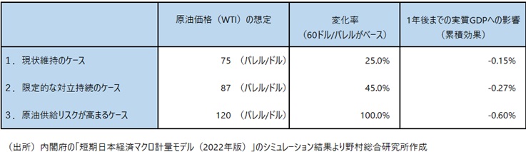 図表 中東情勢の緊迫化と原油価格上昇の日本経済への影響のシナリオ別試算