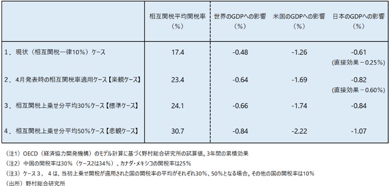 図表 相互関税の経済効果試算(4つのケース別比較)