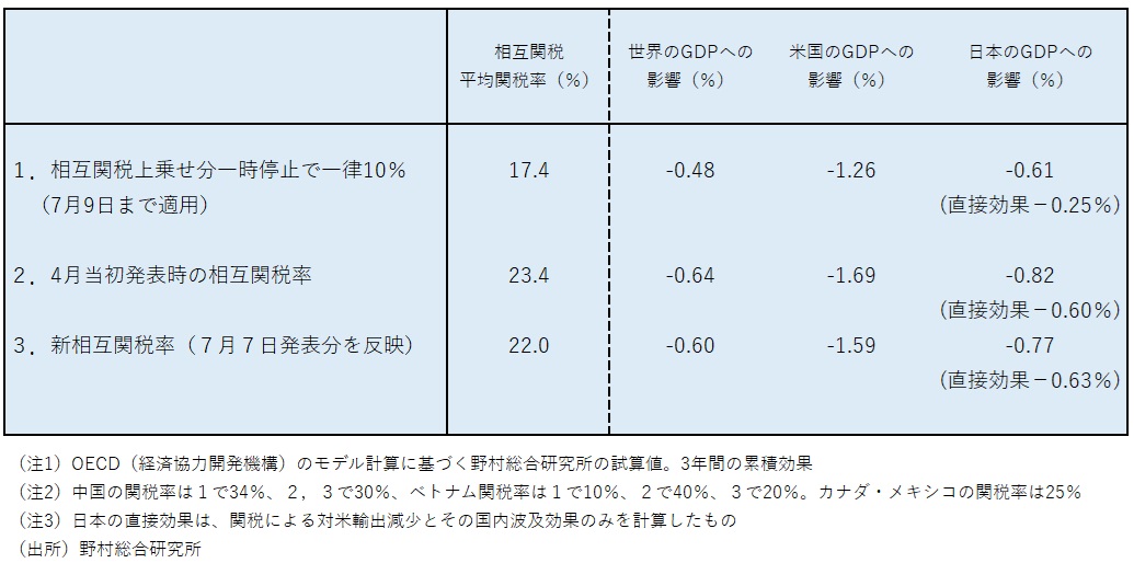 7月7日発表分までの新相互関税率で世界のGDPは0.60%押し下げられる