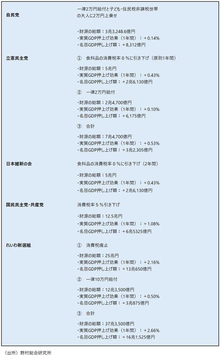 消費税減税の個人消費の増加率を押し上げる効果は一時的であり、恒久的に税収を大幅に減少させ、財政環境を悪化させるという大きなコストに見合う効果を得られるとは思えない。過去数十年にわたる個人消費低迷の打開策になる、との主張も明確な根拠を欠いている。