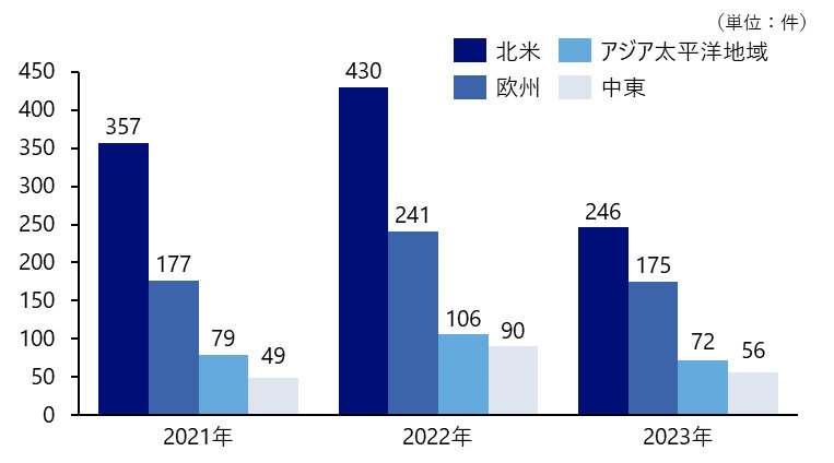 国際的な投資家によるアフリカのスタートアップへの投資件数(2021年~2023年)