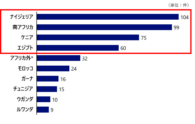 アフリカ各国で資金調達を受けたスタートアップ数(2023年)