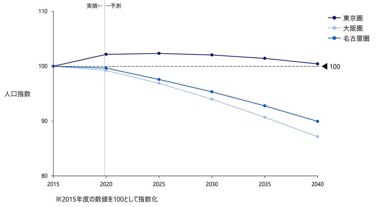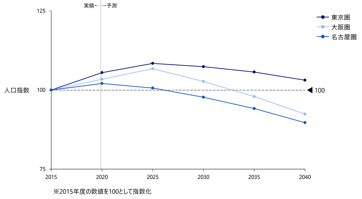 図表1:東名阪都市圏の人口推移