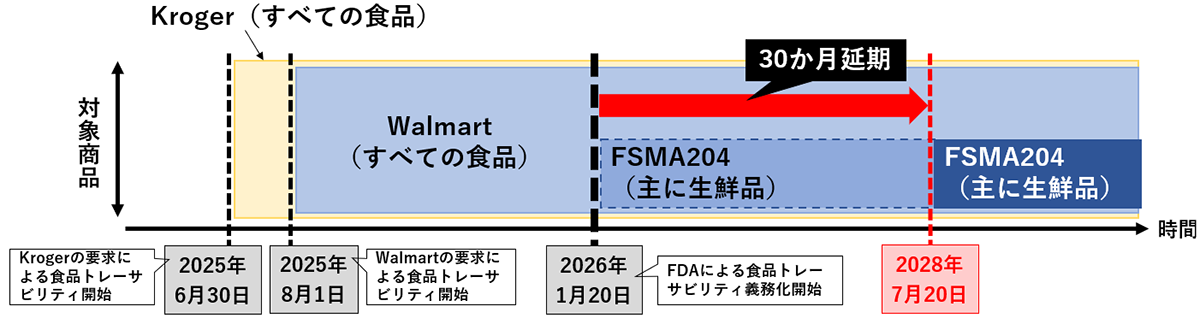 図1 FSMA204と米国大手小売二社の食品トレーサビリティの対象商品と開始時期
