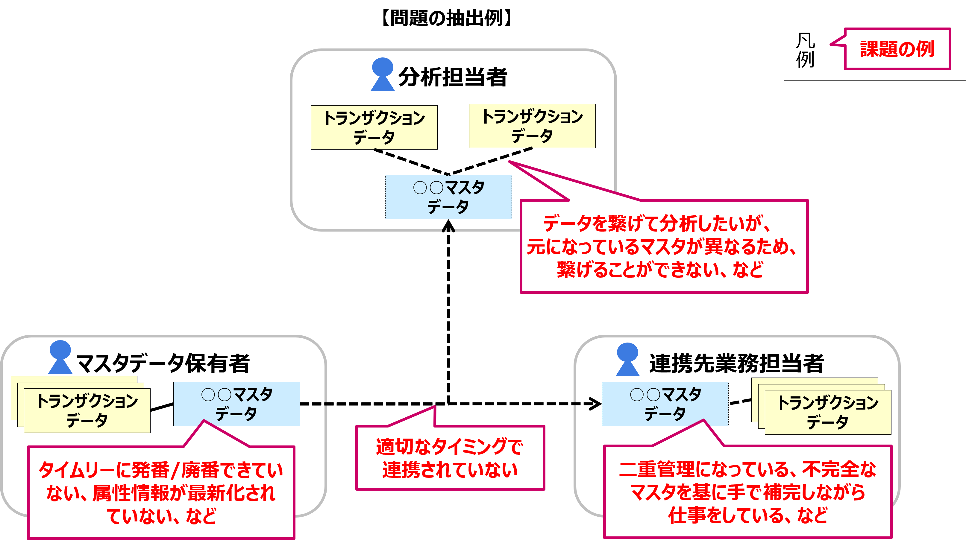マスターデータの問題の洗い出しにあたっては、問題を3つのタイプに分けて考えるとよいでしょう(下図)。