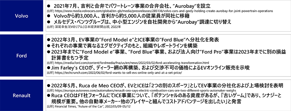 図2 EV事業分社化、ICE事業統合に関する先行事例