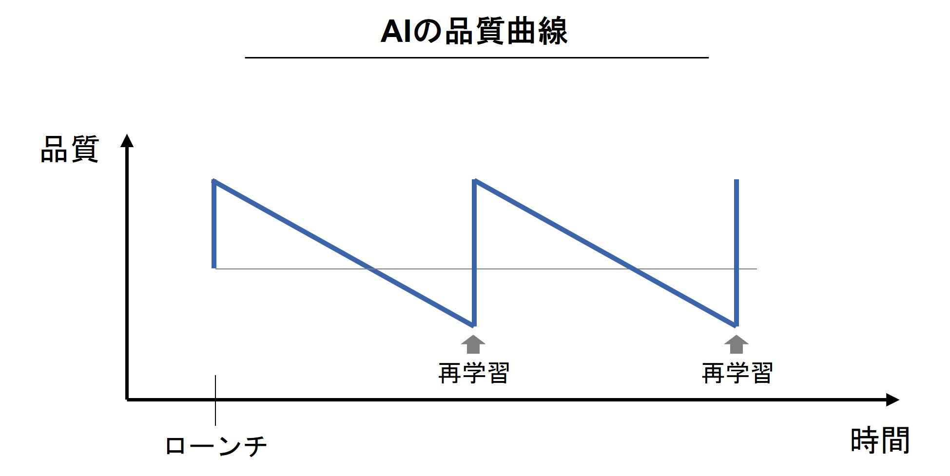 AIモデルはデータによって振る舞いや精度が変化するという「不確実性」があります。古いデータで学習したモデルは古い結果を、新しいデータで学習したモデルは新しい結果を出してきます。そのため、一定基準以上の品質を確保するための仕組み(MLOps:Machine Learning Operations)が必要になります。