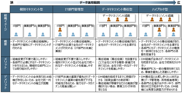 データの活用は各部門が主体となって進める必要があります。一方で、各部門がデータ取引に関するルールを遵守し、適切なデータ取引を実施しているかを全社的な観点からモニタリングする体制が必要です。さらに、適切な取引が円滑に行えるよう、各部門の現場の担当者を支援する体制も重要です。