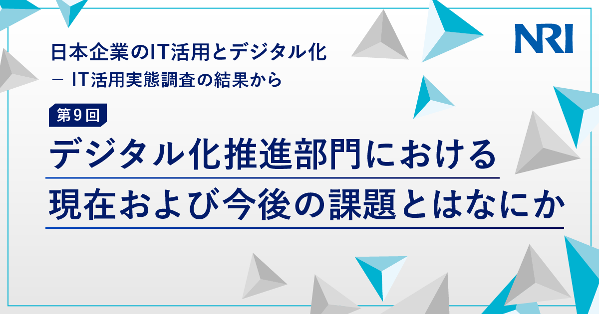 株式会社野村総合研究所では、2003年より毎年、売上高上位の国内企業約3000社を対象に「ユーザ企業のIT活用実態調査」を実施しています。この連載では、最新の調査から、いくつかの設問をピックアップして集計結果をご紹介します。日本企業のIT活用動向を知るとともに、自社のデジタル化および情報化の戦略を考える一助としてご活用ください。