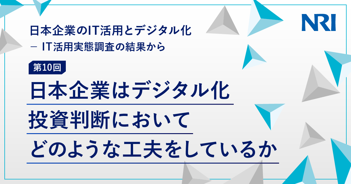 株式会社野村総合研究所では、2003年より毎年、売上高上位の国内企業約3000社を対象に「ユーザ企業のIT活用実態調査」を実施しています。この連載では、最新の調査から、いくつかの設問をピックアップして集計結果をご紹介します。日本企業のIT活用動向を知るとともに、自社のデジタル化および情報化の戦略を考える一助としてご活用ください。