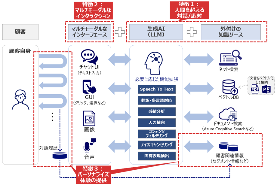 このようなマルチモーダルなアプローチを顧客接点に活用することで、企業は、従来のチャネルやデータ種別(テキスト、音声、画像等)の制約から離れ、顧客とのインタラクションをよりリッチで多様な形で行えるようになります。