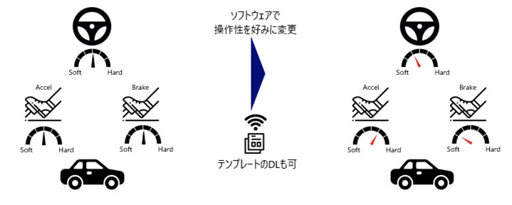 例えば、操作性の設定をテンプレート化し、自動車メーカーが著名なレーサーとコラボレーションして「〇〇氏推奨の設定」として配布することで、その操作性を体験したい個人が自分のクルマに適用するような未来が来るかもしれません。