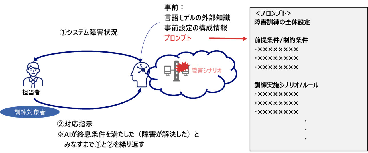 さらに、障害振り返りで得られた知見を蓄積し、生成AIへのインプットとすることで、さらなる障害対応精度の向上が期待できます。加えて、このモデルは、障害訓練・教育にも応用可能です。AIに構成情報や固有の障害手順書をインプットして、バーチャルな環境を構築し、そこで運用エンジニアの訓練を実施できます。具体的には、生成AIに事前設定として障害訓練の段取りやルールを与え、環境やシステム情報をインプットし、AIに障害状況を設定させます。その状況に対して運用エンジニアが対応することで、障害対応のシミュレーションを行うことができます。これは生成AIをゲームマスターにしたシミュレーションゲームの応用と言えますが、私たちの実証検証でも十分実用的な結果が得られています。