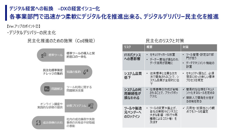 【図3:デジタルデリバリー民主化に向けた支援施策とリスク図】