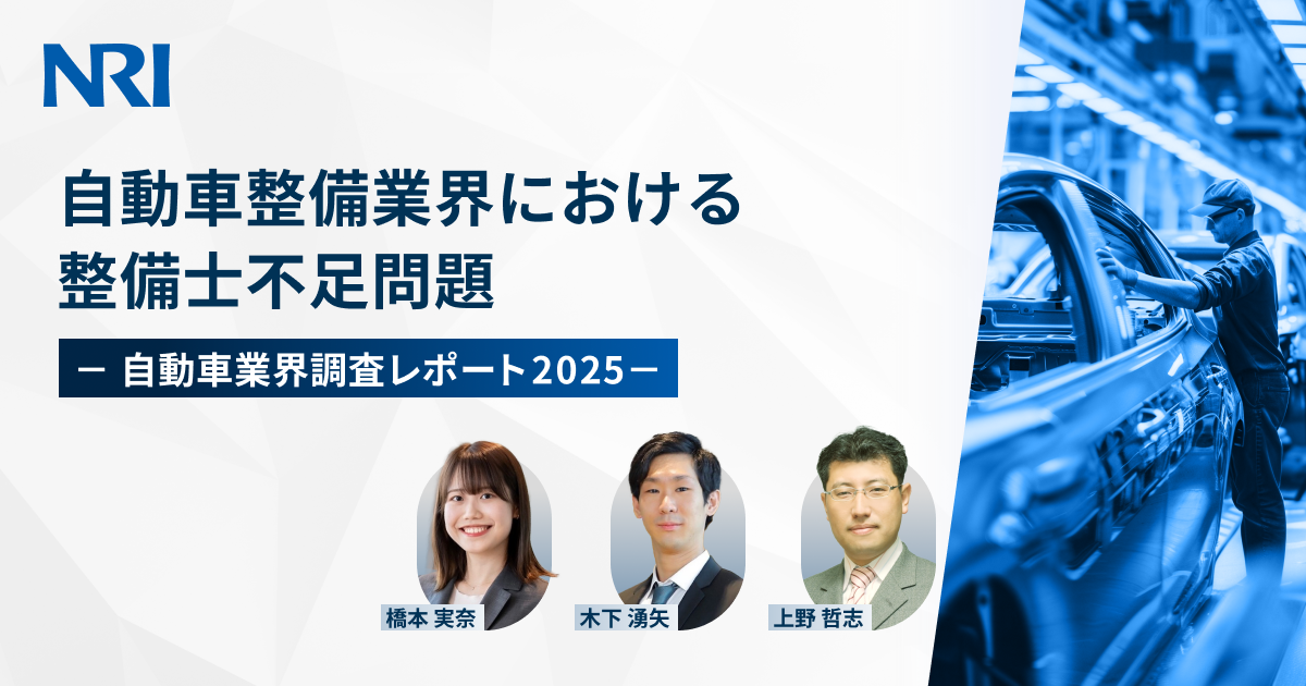 NRIでは、現場の生の声を把握し整備士不足問題の解決の糸口を探るため、整備士を対象とした独自のアンケート調査を実施しました。 調査結果からは、様々な実態が明らかになっています。調査結果と分析、具体的な解決策については、下記よりダウンロード可能な「自動車業界レポート2025 自動車整備業界における整備士不足問題と解決の方向性」をご参照ください。