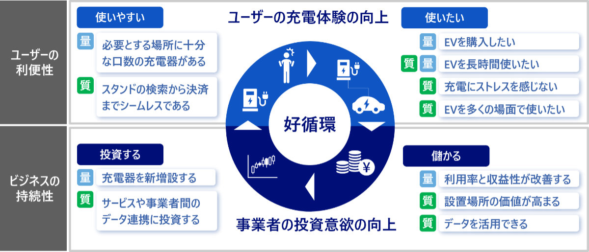 このように設置場所運営者にとっても魅力的な価値を提供することで、より多くの場所で充電器設置が進み、ユーザーの利便性がさらに高まります。その結果、「量」と「質」の両面で充電インフラの拡充が加速していくことが期待されます。