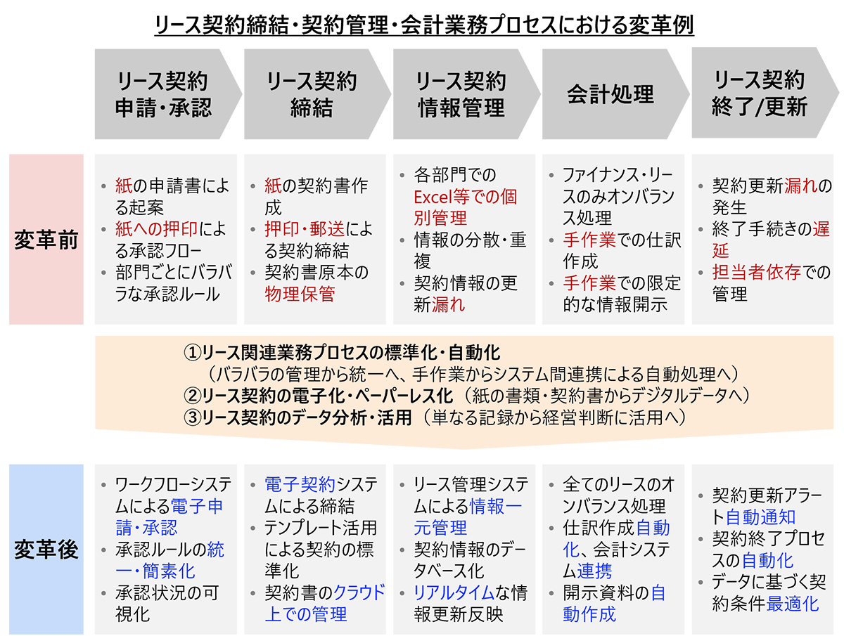 - ①リース関連業務プロセスの標準化・自動化
