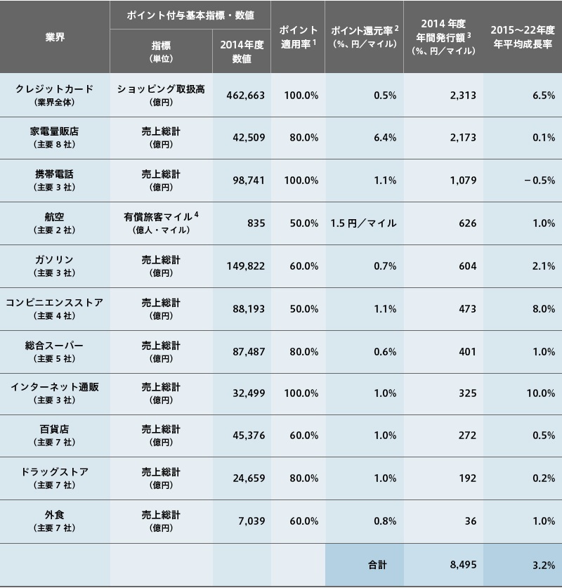 表:2014年度の国内11業界のポイント・マイレージ年間最少発行額