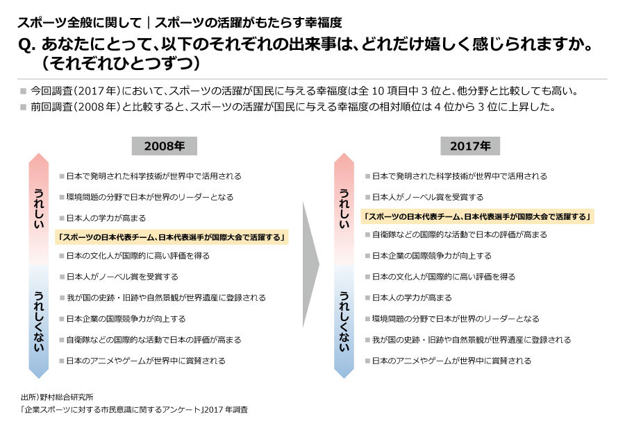 スポーツ選手の活躍で、幸福度はアップ? ~企業スポーツ調査からわかる国民の意識変化~