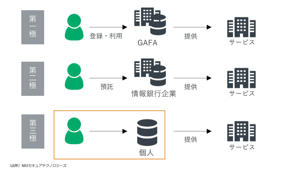 すでに日本では、2015年度に個人情報保護法が改正されたことで、企業が情報銀行としてのサービスを提供することが可能になっています。柴田はこうした動きを評価した上で、第三極の動きにも注目しているといいます。