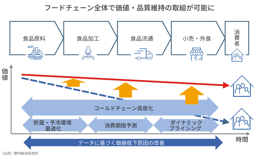 日本国内で年間650万トンにのぼる食品廃棄は社会問題となっています。2019年10月には食品ロス削減推進法が施行され、自治体に削減計画策定を求めたり、食品ロスを排出する事業者に食品ロス削減に取り組むよう努力義務が課せられました。生産から加工、流通、小売りに至るフードチェーン全体でデジタル化と情報連携を進めれば、食品ロスの削減や効率化、付加価値の向上につながると、長年にわたり食品業界に携わってきた野村総合研究所(NRI)の岩村高治は考えています。食品業界はデジタル化でどう変わるのでしょうか。