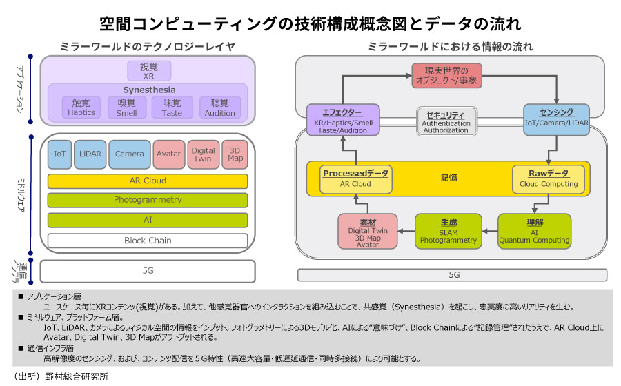 第5世代移動通信技術(5G)、スマートグラスなどのXRデバイス、人工知能(AI)、インフラとなるAIクラウドなどの要素技術が揃い、空間コンピューティングによってミラーワールドと現実世界を重ね合わせる体験が可能になっているので、視覚だけでなく他の感覚も使った新しいアート体験を目指しました。