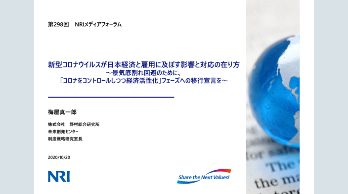新型コロナウイルスは日本経済に大きな影響を与えています。今後、アフターコロナ、ウィズコロナの時代を迎える上で、景気底割れを回避するためには何が求められるのか。これまで2回にわたって新型コロナウイルスに関する緊急提言を行ってきた野村総合研究所(NRI)の梅屋真一郎に、新型コロナウイルスが日本経済にどのような影響を及ぼしているのか、それに対してどのような対応が求められるかについて聞きました。