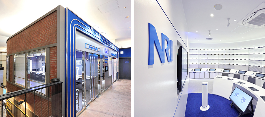 (左)NRIパビリオンの外観(右)ビジネスデザイナーの体験ができるブース