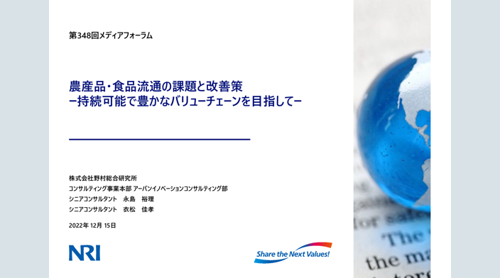 農業・食品関連産業は、私たちが生活していく上で最も基本となる産業の一つです。それだけに長い歴史があり、業界独特の仕組みや商習慣が存在しています。しかし近年は農家の減少や低い生産性、人口減少による国内マーケットの縮小など、多くの課題に直面しています。今後の発展のために、農業・食品関連産業はどのような変革に取り組むべきなのでしょうか。業界全体のトレンドや取り組み事例を交えながら、アーバンイノベーションコンサルティング部の永島裕理、衣松佳孝が提言します。