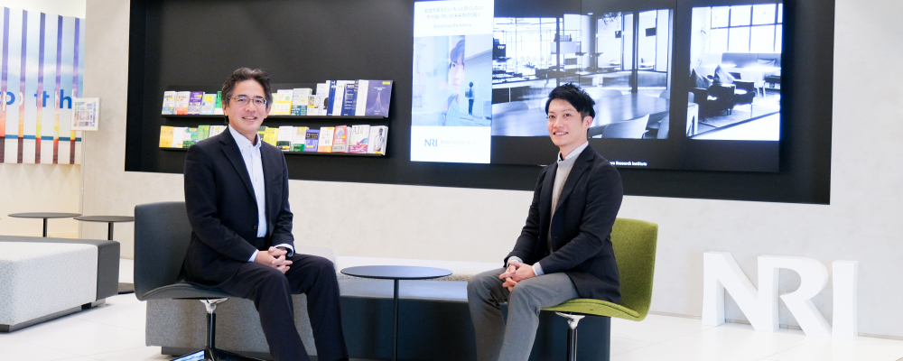 人材や働き方の多様化、VUCA(変動性、不確実性、複雑性、曖昧性)な事業環境を背景に、日本の人材マネジメントは大きな転換期を迎えています。野村総合研究所(NRI)では、人材戦略と事業戦略を結びつけ、適材適所と働きがいを同時に実現させる人的資本経営プラットフォームを構想し開発を進めてきました。プロジェクトメンバーの河邊俊輔と村田龍俊に取り組みについて聞きました。