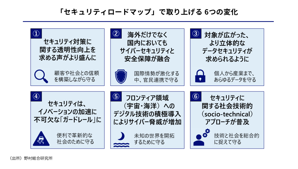 セキュリティに関連する事象を上記のPESTの観点から考察すると、6つの動向の変化が浮かび上がってきます。
