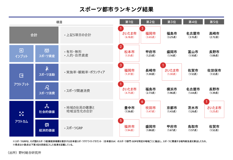 国内106都市のランキングが示す、スポーツが都市にもたらす価値