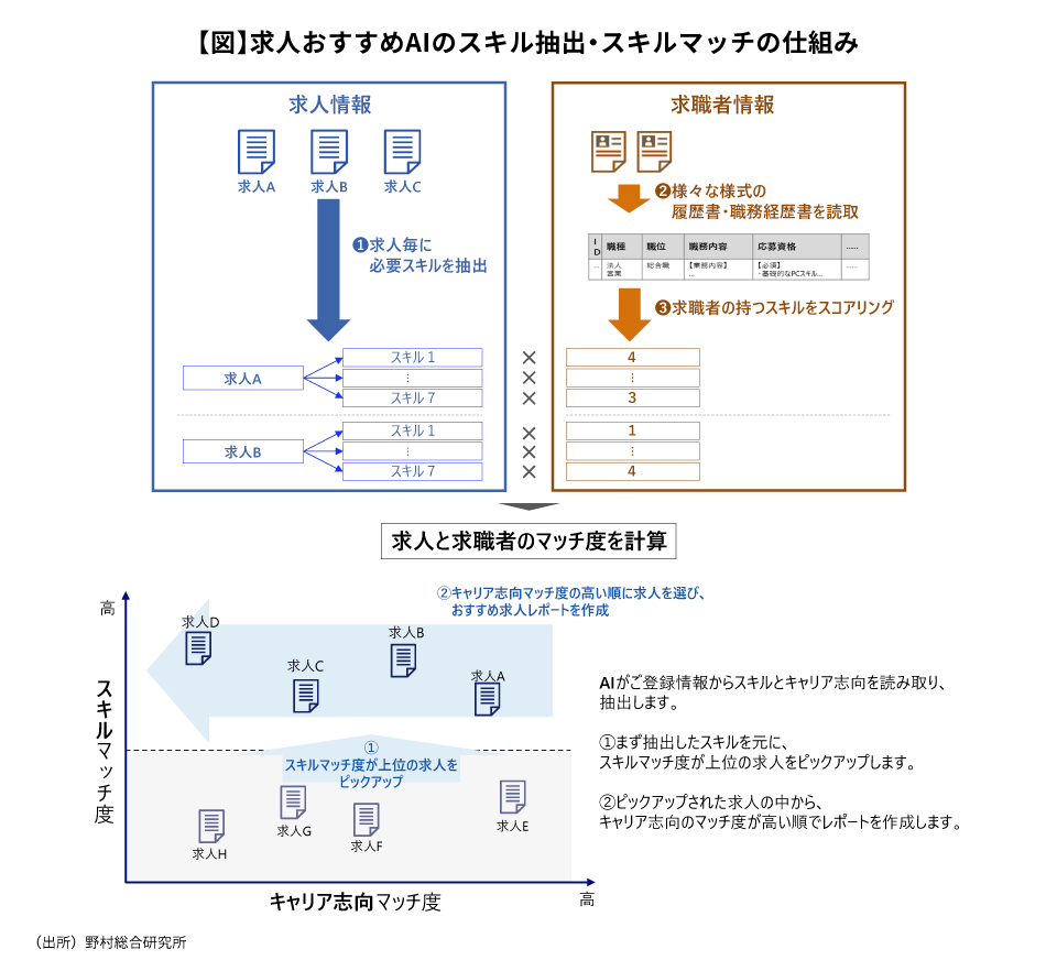 デジタル化が進み、特にエンジニアのキャリア採用市場が過熱しています。これは転職を考えている人にとって朗報のようですが、選択肢が多すぎてかえって自分に合った仕事が探しづらくなる側面もあります。そうした求職者に寄り添って、成長機会を最大化していただこうと、NRIでは独自の「求人おすすめAI」サービスを開始しました。企画開発に携わった串間淳と中井亮に新サービスに込めた想いについて聞きました