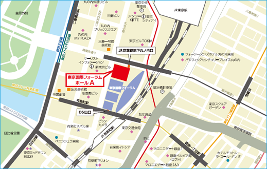 - 東京駅より徒歩5分(京葉線東京駅とB1F地下コンコースにて連絡)
