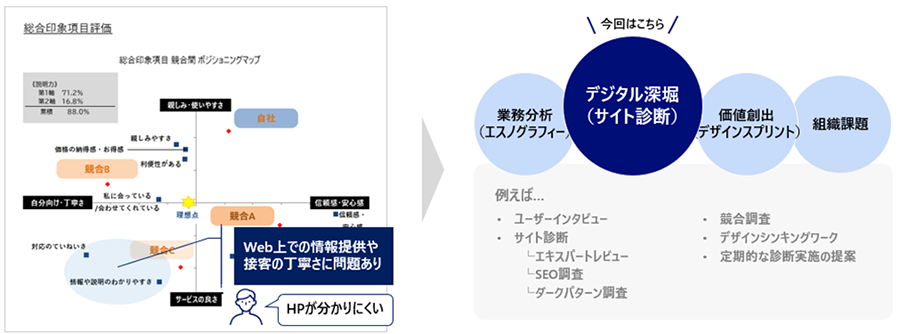 アンケート結果やそれを踏まえた議論を基に、CX向上に向けて注力すべきポイントを定め、最適なアプローチを提案します(図3)。