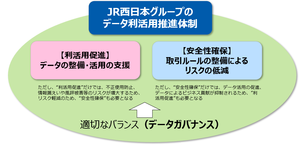 西日本旅客鉄道株式会社(本社:大阪府大阪市、代表取締役社長:長谷川 一明)、株式会社野村総合研究所(本社:東京都千代田区、代表取締役会長兼社長:此本臣吾、以下「NRI」)は、JR西日本グループ全体のデータ利活用を通じて顧客および社会への価値創出を行うことを目的として、データガバナンス(データの利活用促進、安全性確保、推進体制構築)に関するルール・ガイドライン、活動内容の策定を共同で推進致しました。