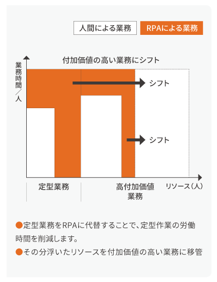 ホワイトカラーの定型業務をロボット(RPA)に代替して生産性を向上する取り組みが必要です。