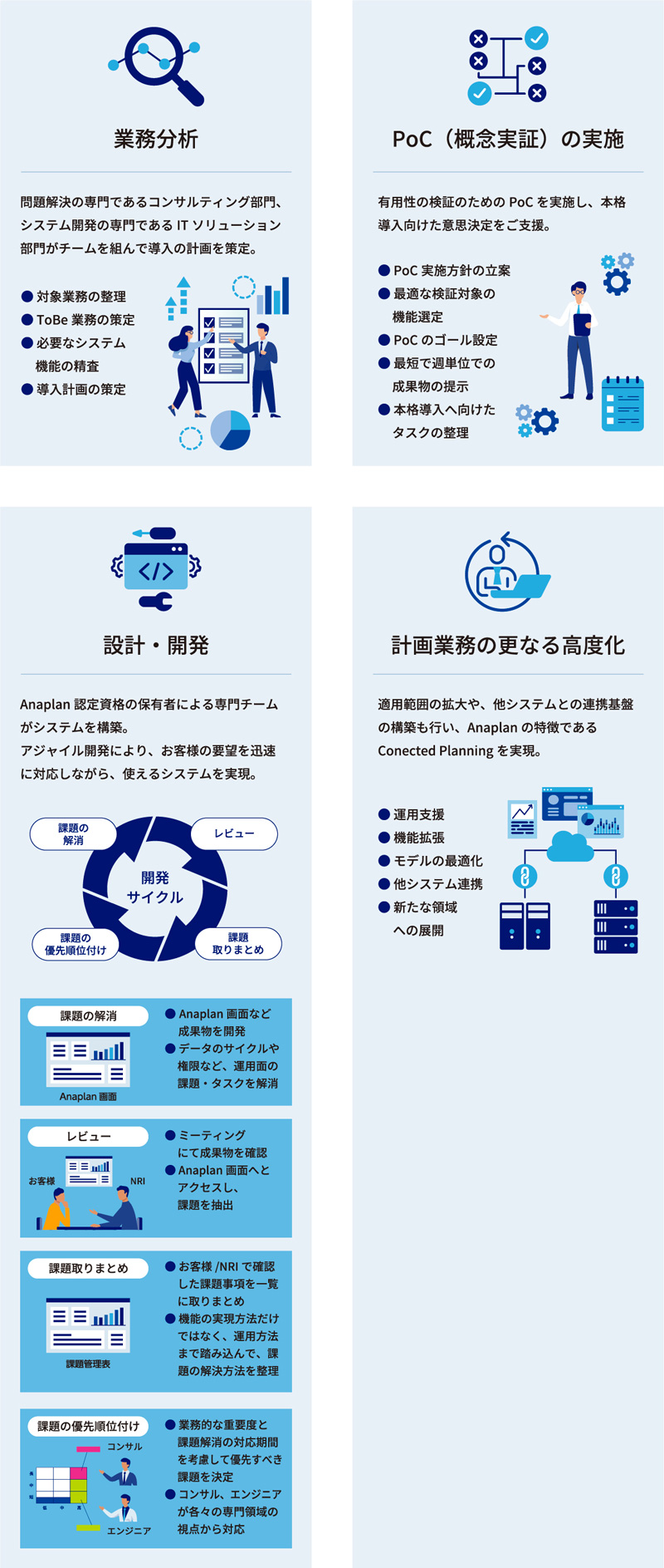 NRIでは、企業・組織の計画業務を変革を実現するために、クラウド型サービス「Anaplan」を用いた計画業務ソリューションを提供しております。