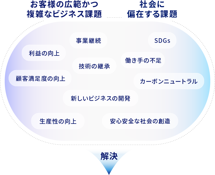 働き手の減少などの社会課題に、AIの技術やロボティクスを組み合せて、人の業務を支援し効率化をサポートします。