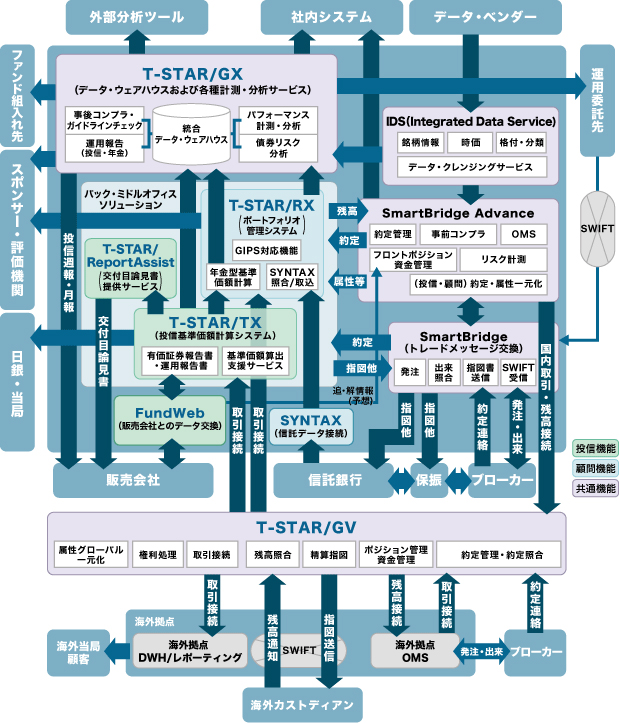 資産運用会社での投資信託・投資顧問・年金等の運用業務をトータルにサポートし、投信基準価額算出をはじめとする業界標準のインフラサービスとして、多くのお客様にご利用いただいています。