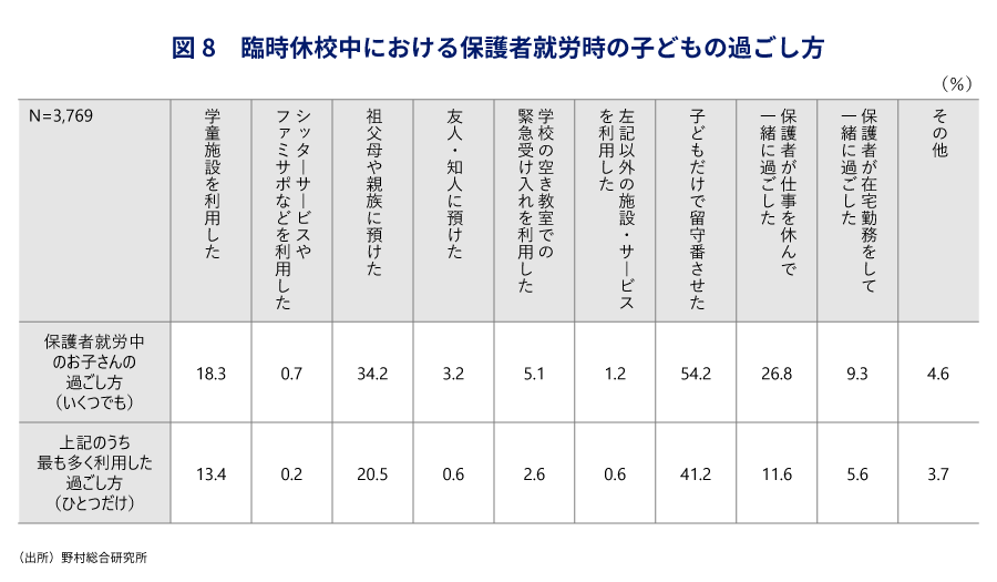 新型コロナウイルス感染症発生に伴う臨時休校(以下、臨時休校)により、子どもを持つ多くの家庭が、臨時休校中の子どもの生活・学習環境の確保、保護者の働き方を見直す必要に迫られた。