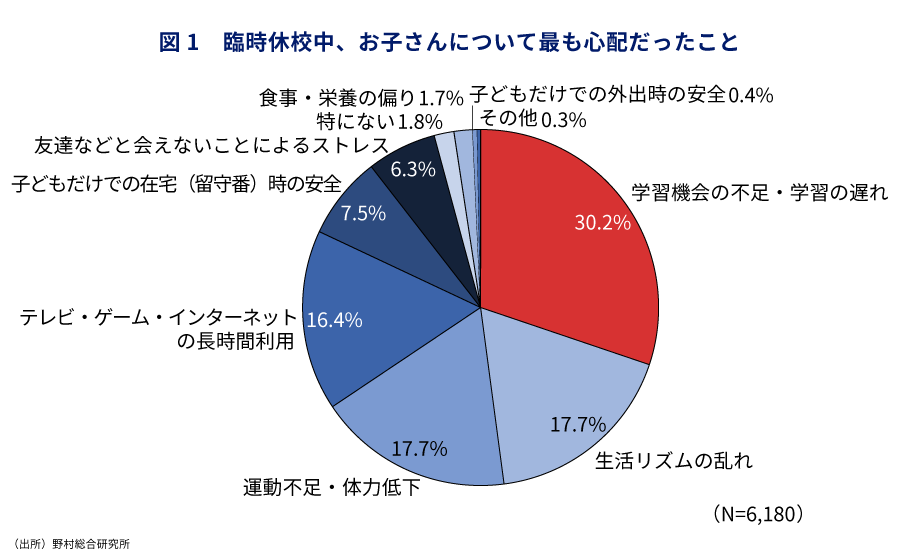 - 野村総合研究所は、2020年3月23~24日に、全国の臨時休校になった小学1~6年生を持つ保護者6,180人を対象とした「新型コロナウイルス感染症発生に伴う臨時休校に関するアンケート調査」を実施した。