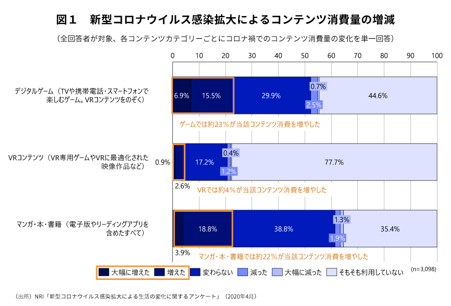 新型コロナウイルス感染拡大により、自宅でのコンテンツ利用に変化が生じた