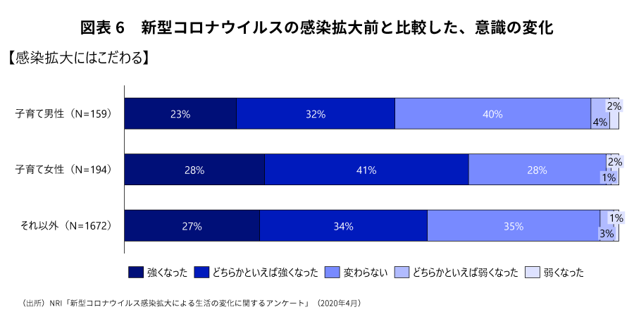 6:新型コロナウイルスの感染拡大前と比較した、意識の変化)。