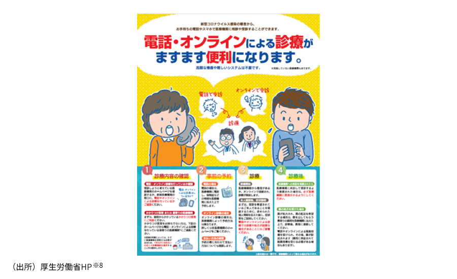 医療機関の逼迫した状況やコロナ禍での外出自粛の状況を踏まえ、医者⇔患者間の感染や院内感染のリスクがある対面診療に代わり、オンライン診療が注目を集めている。