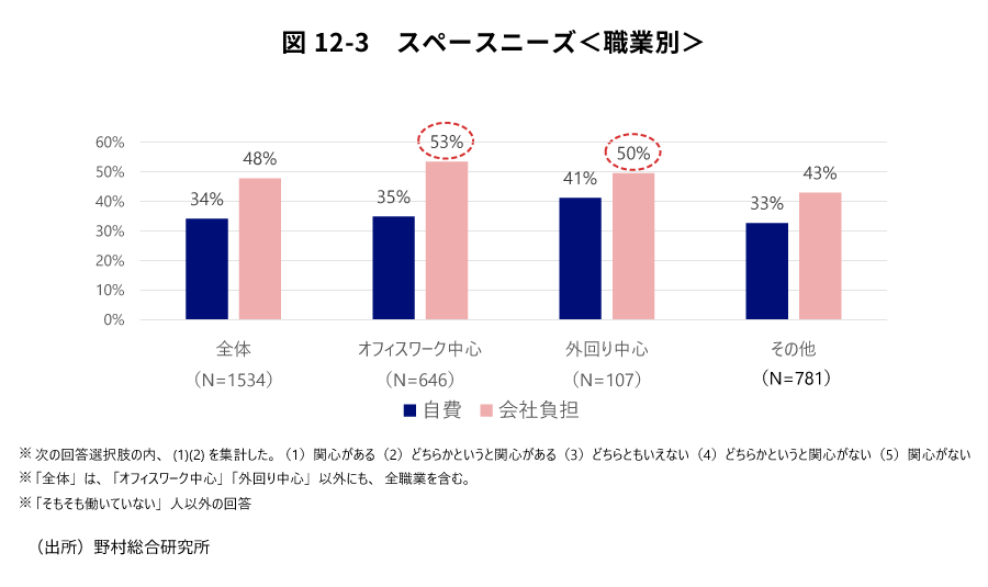 自宅勤務の課題で見た、「メリハリの欠如」や「専用スペースの欠如」「家族の存在による集中しにくい環境」の解消のため、関心度が高いと推察される。