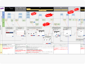 ユーザーがサービスを体験する一連の流れを整理します。課題や提供価値を可視化することで、体験設計の道標となります。