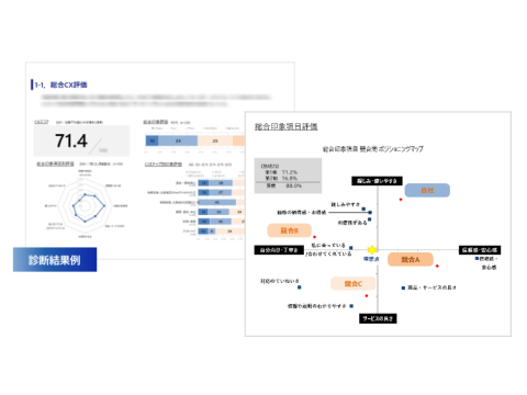 対象サービスに関する一連の体験(非デジタルでの接点も含む)について実顧客へアンケートを実施するため、生の声に基いた現状分析ができます。利用に至らなかった人へもアンケートを行うため、両者の体験を比較できます。アンケート結果は、定量的(総合CXスコアやNPS*等)・定性的(フリーアンサー)に分析します。 また、競合会社の実顧客へも同様のアンケートを行うため、競合と比べた客観的な現状の立ち位置や強み・弱みを把握できます。