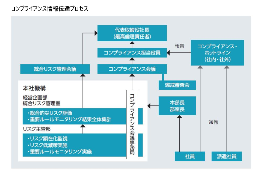 NRIでは、公益通報者保護法に基づいて公益通報運用規程を定め、国内グループ社員がコンプライアンス関連の問題を相談できる窓口として、社内・社外に「ホットライン」を設定しています。
